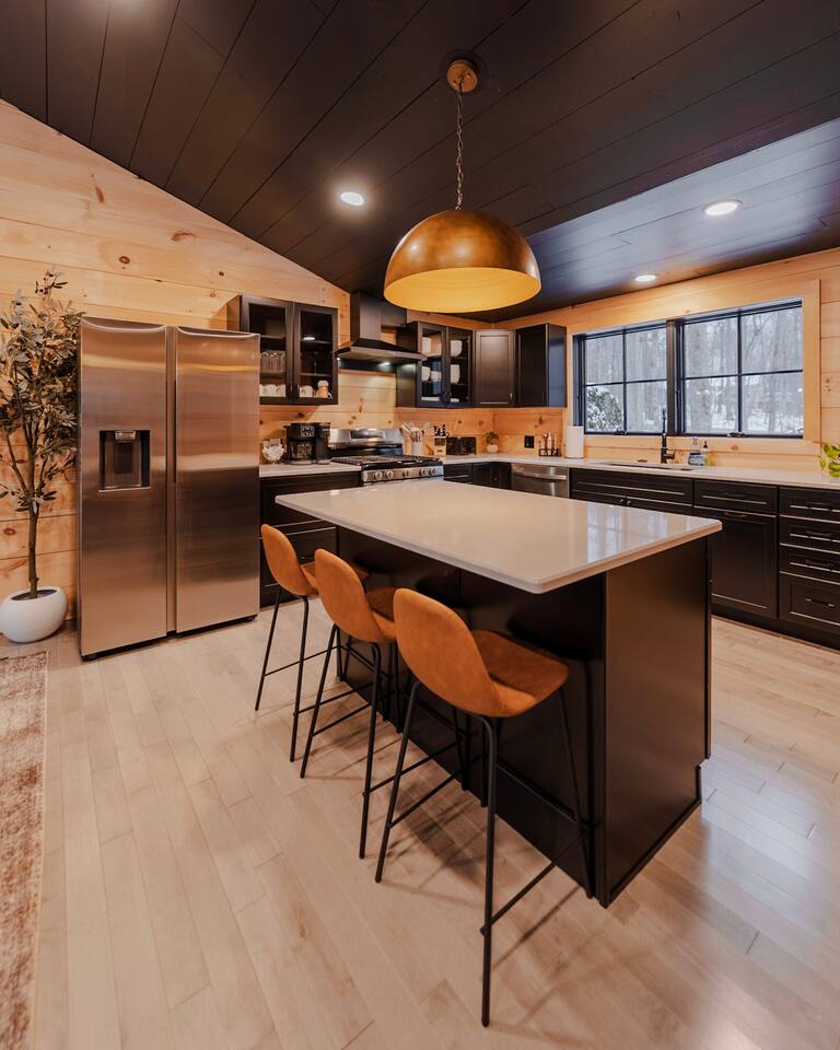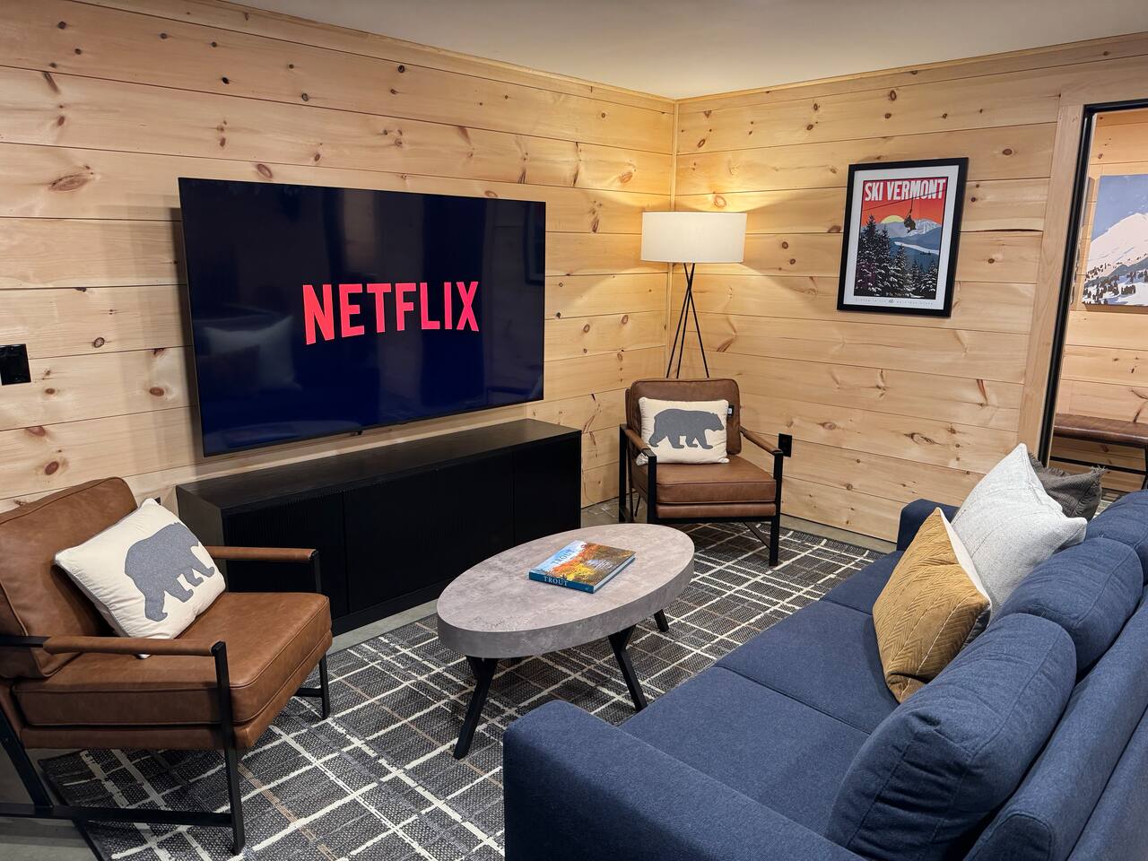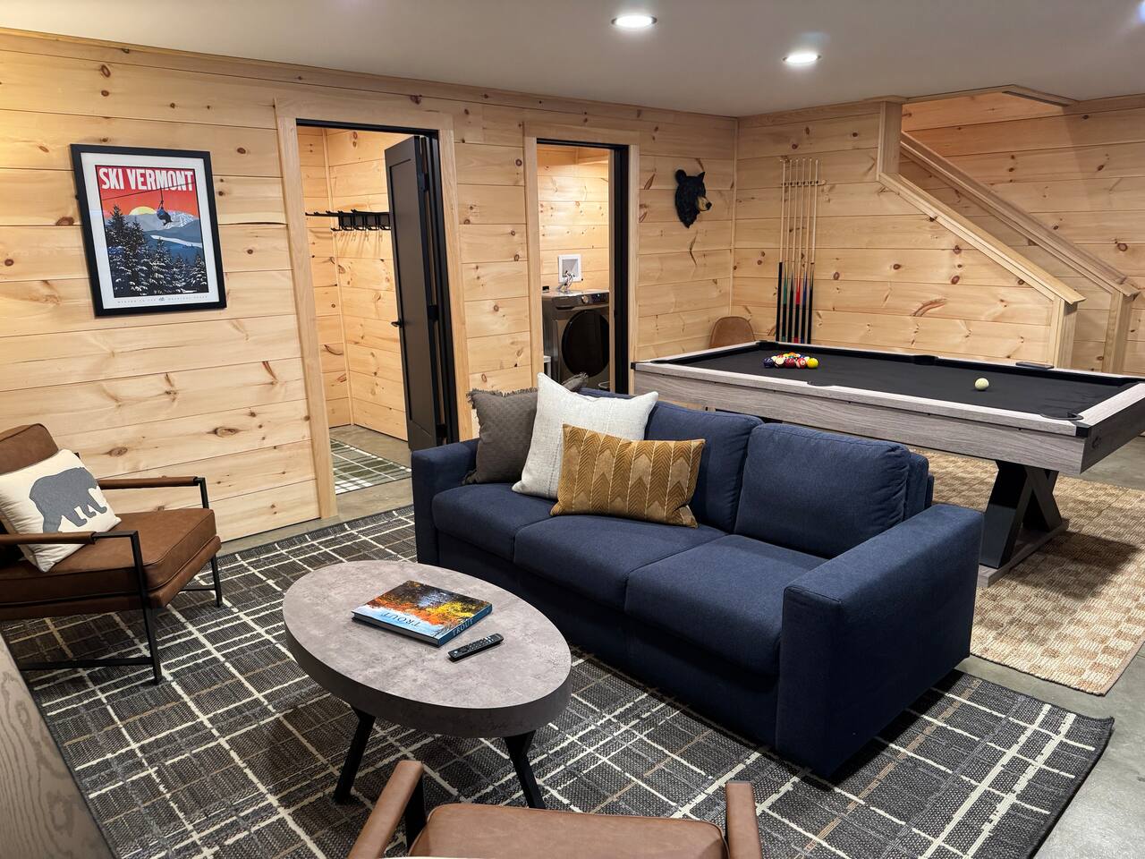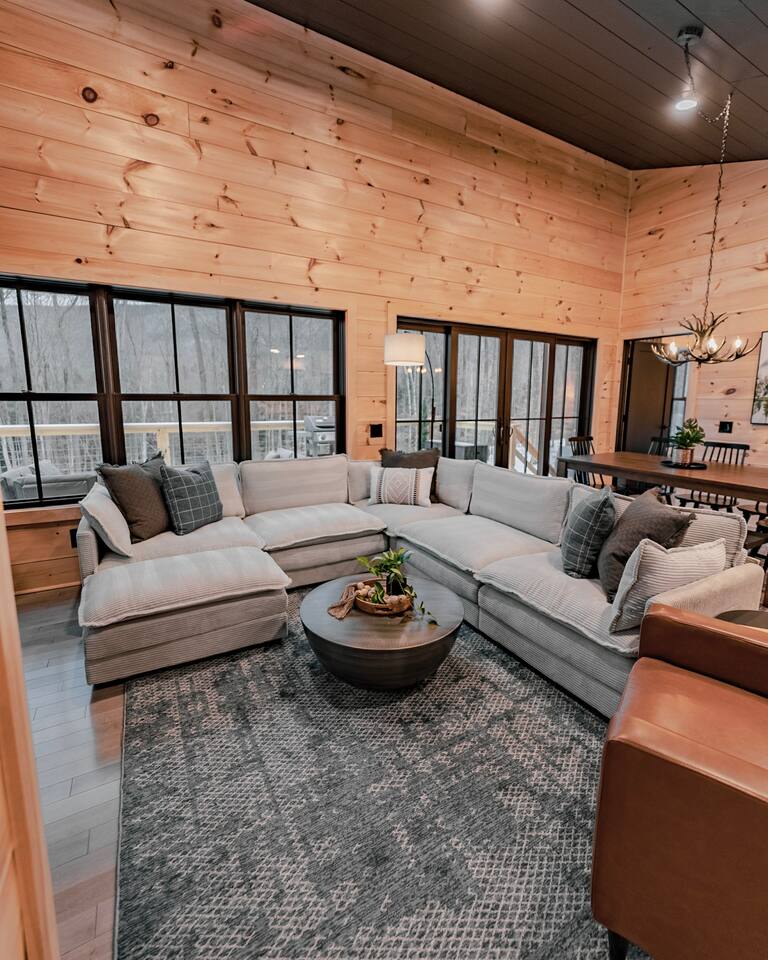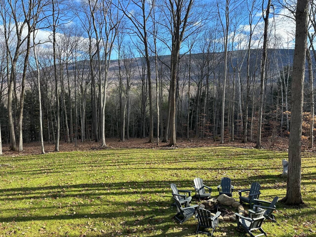 This cabin provides 3 cozy bedrooms and 3 full bathroom: -Bedroom 1 has one King bed, and en-suite bathroom -Bedroom 2 has one King bed and en-suite bathroom -Bedroom 3 has one King bed and en-suite bathroom -Lower Level has one Queen pull out couch -Fully equipped kitchen -Dining room seating includes a dining table with seating for 8, and 3 stools at the island -Smart TVs in both living spaces, and all bedrooms -Desk in Bedroom #1 -Lower Level includes shuffleboard, pool table, board games -Washer + Dryer -Tesla Powerwall- whole home back up power, in case of an outage Outdoor Space Includes: -Hot Tub -Sauna -Tesla EV Charger -Fire pit with 8 chairs -Expansive Deck with Dining Table (seating for 8) -Outdoor Sofa -Weber Grill -Large backyard with woodsy Mountain Views -We are located on a rural residential street with neighbors on both sides. Main Floor: Step into our cozy, yet modern cabin with serene back deck. The open-concept living space features warm natural wood paneling, vaulted ceilings with a dramatic black accent, and large windows that bring in plenty of natural light. Relax on the sectional sofa or the leather recliner, perfect for unwinding after a day of adventure. Whether you’re sipping your morning coffee or enjoying a cozy evening inside in front of the electric fireplace, this space is designed for relaxation and connection. Kitchen: The fully equipped kitchen boasts sleek black cabinets, stainless steel appliances, and a spacious island with seating for three. There is a complimentary coffee station with your coffee necessities and hot chocolate for the kids! Gather around the 8 person dining table for a home-cooked meal or game night. King Bedrooms 1 & 2: Two Bedrooms are located on the main level, both with their own en-suite bathrooms and woods/mountain views. Both Bedrooms have comfy king beds, with bamboo linens, 50” smart TVs, full length mirrors, and rain showers with bluetooth speakers. Bedroom 2 has a make-up vanity for getting ready. Bedroom 1 has a desk, should you need to get some work done. Fast Wifi from Xfinity will help you stay connected. Deck: Off of the main level you will find the spacious deck with woodsy views of several mountain ranges and an outdoor sectional couch. Use the Stainless Steel Gas BBQ grill to make your favorite meal and enjoy it at the outdoor dining table with seating for 8. Lower Level: Downstairs you will find Bedroom #3 with a king bed and on-suite bathroom with shower/tub combo. There is also a 50" smart TV as well as a full-length mirror. In the closet you will find an iron and ironing board. The basement does not have AC, but generally stays pretty cool in the summer months. The lower level has an additional living space and game room. Kids and adults will enjoy the shuffleboard table, pool table and board games. There is a 75" TV, perfect for a movie night or catching a game. Lower level walks out to patio where you can enjoy a relaxing night soaking in the hot tub or winding down in the sauna. Firewood will be provided for the fire pit. Drive your car around to the back to access the lower level ski drop/storage room. A dog bed and bowls are provided for your furry friend. They are located in the laundry room. Laundry detergent and dryer sheets are provided for your extended stay. Additional photos, video tour and general property updates may be found on our social media page: @boulderruncabin_vt Ready to hit the slopes? ~20 minutes to Bromley Ski Resort ~33 minutes to Stratton Ski Resort ~35 minutes to Magic Mountain Ski Resort Nearby Towns ~9 minutes to Manchester (shops, outlet stores, dining and more) ~9 minutes to Arlington ~20 minutes to Bennington Outdoor Adventures and Unique Experiences -Vermont Mountain Adventures, Snowmobiling Tours: 10 mins -Land Rover Experience Driving School: 10 mins -Orvis Fly Fishing School: 10 mins -Green Mountain Falconry School: 10 mins -Equinox Golf Resort & Spa: 10 minutes -Lye Brook Falls hiking area: 10 minutes -Hildene Homestead: 15 minutes Please note the following house rules: Only two dogs are allowed per stay and there is a $200 pet fee per stay. There will be additional charges for any additional unapproved dogs on the property. No other pets are allowed. Please be sure to pick up after your dogs. Please no dogs on the furniture. Excessive dog hair will result in an additional cleaning fee. No parties allowed. The maximum amount of people allowed is the amount listed at the time that you book. There will be a $500 fee for any unapproved extra guests. Smoking or vaping is prohibited inside. If you do smoke outside, please pick up all remnants. Minors must be supervised by an adult when using the hot tub, sauna or fire pit. The hot tub, sauna and fire pit are to be used at your own risk.