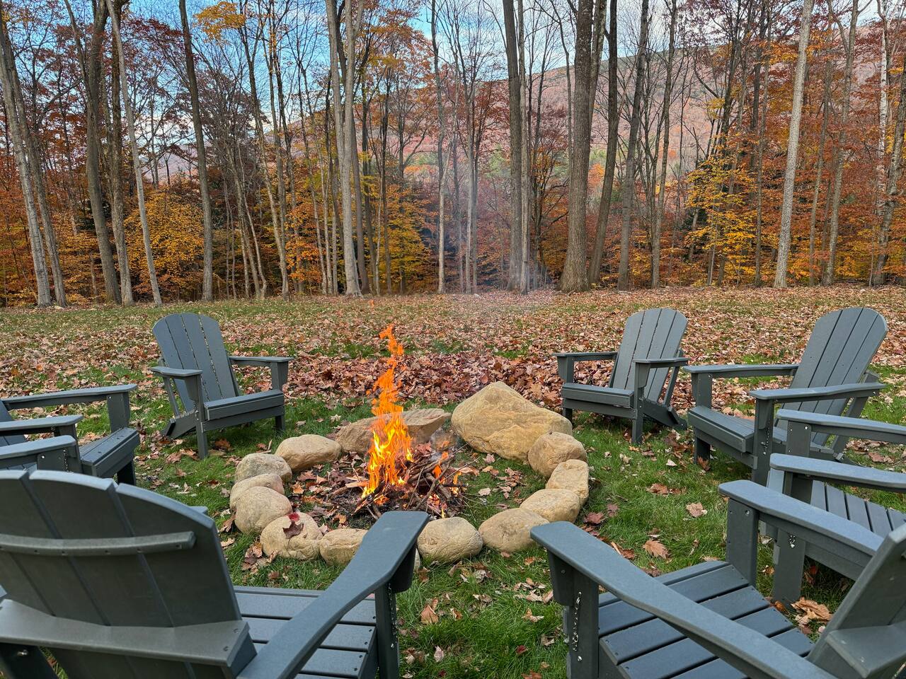 In order to confirm your booking, we require a signed liability waiver. The link will be sent to you after booking. There are several "rock" steps to the front entrance of the house. Please watch your step and use caution going up and down the stairs/steps. There is no AC in the lower level. We are located on rural residential street with neighbors. The house sits on 2.5 acres and the backyard has private views.